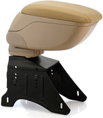 It is made of good quality solid plastic with cushion and covered with eco-leather. Huge storage space beneath the cushion rest. The arm rest aligned to seats can be vertically folded when not required. It can be slide forward (as shown in the picture up to 5.5cm ahead) depending upon the comfort position of one's arm Specifications: • Huge storage space • Foldable design • Adjustable arm • Does not obstruct with the operation of hand-brakes. • Five adjustable height settings with the help of support plates provided in the package • Things to check: • Arm rest is fitted around the handbrake area of your car and is compatible with your car only if similar plastic area around handbrake.