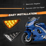 Imported Present Turning Side Indicator For Bikes/Motorcycle. Condition: 100% new and stylish design; Input Voltage: 12V DC. Light source: LED. Energy-saving level are far superior to traditional lighting products. With high brightness, low heat, low energy consumption, high efficiency, no filament structure. Cool shape design makes the bike more grade, keep the rate higher. Light function: Light up without delay, optical purity, Material: High quality black plated ABS plastic. Features: Waterproof, Durable, Low temperature, low power consumption, high performance indicator. Faster on / off time and vibration resistance. Lifespan: 30,000 hours.