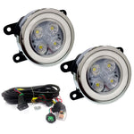 High Power Premium Quality 4 Led DRL Fog Lamp (White) with Chrome Ring Assembly (Set of 2)
