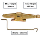 - [SPECIFICATION]: Scissor jack features a lifting range of 85mm to 340mm. It gives you the ability to handle a wide range of vehicles including small cars, sedans, coupes and suvs. Please carefully check whether the lifting height of the automotive is suitable for our car jack before placing an order, so as not to cause trouble to your vehicle.