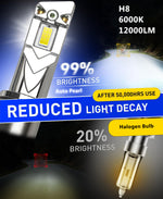 Auto Pearl H8 LED Headlight Bulbs for Car – 120W, 12000LM, 6000K Cool White, Super Bright with Turbo Cooling Fan, compatible with All Car (Pack of 2)