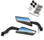 Wing Mirrors give your bike an aesthetic appeal, and enhance the sporty element of your bike from all the angles! Sleek, compact, and sporty mirrors This rotating side mirror has the axis of up and down rotation, free to switch the two modes of the rear view mirror and the fax. Unique Custom Design Of Superb Quality, Crafted From CNC aluminum. Fixings Are Made From Stainless Steel Which Is Very Strong And Corrosion Resistant.
