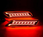 Premium Quality Rear Bumper Reflector Lights set of 2 Pcs. OEM reflectors are replaced with the Reflector Lights, Adds an elegant look to the rear styling, 12V wiring attached to the tail light. Normal red when lights on, Bright red when Braking. Provides added visibility of your car to the rear oncoming traffic. Set of 2 pcs Right and Left. Product features - light guide brake light plus turn signal basic parameters product name - dedicated rear bumper warning lights case material - abs material plus imports LED lamp beads rated working voltage - dc 12v features Imported chip high brightness LED, energy saving, long life, Driving, soft lighting, braking, brightly lit, To avoid rainy rear-end play with the best performance, as a safety warning lights, 4 novel. Designs, lighting decorative correct.
