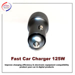 Compact Metal Mini Dual Port Ultra Fast Car Charger, USB A & Type C Port with Type-C Red Cable, Turbo Charger, Grey Compatible with All Cars (Pack of 1)