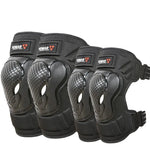 - Knee pads and elbow pads are made of high grade durable fabrics, with EVA foam padding and polycarbonate full-coverage caps for superior protection that won’t restrict movement