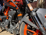This Radiator guard is made upon high quality Steel, and it is finished with the high quality powder coating. This radiator guard will save your radiator from stones and mud it adds unique looks to your bike.