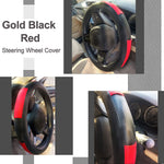 Ring Type Car Steering Wheel Cover Universal Genuine PU Non-Slip Natural Rubber Well Padded Grip Breathable Leatherite for - Cars (Gold Blaze Black N Red)