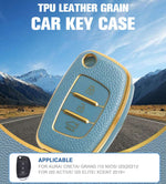 TPU Leather Grain Car Key Case Compitable with Aura | Creta | Grand i10 NIOS | i20 (2021) | i20 Active | i20 Elite | Xcent 2019 |3 Button Remote Key (Blue)